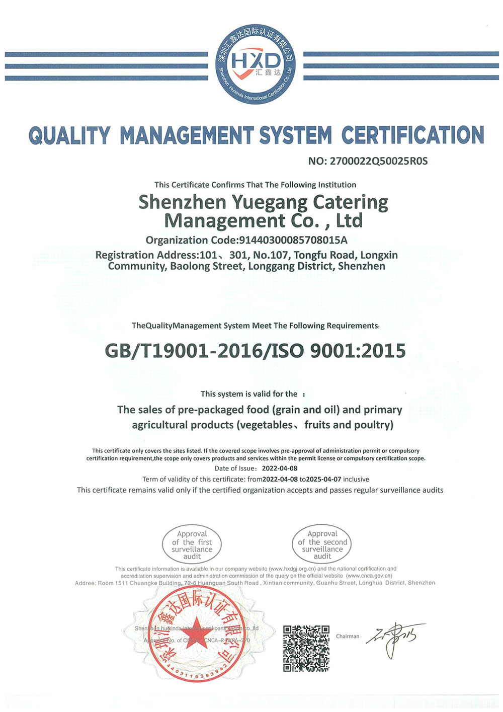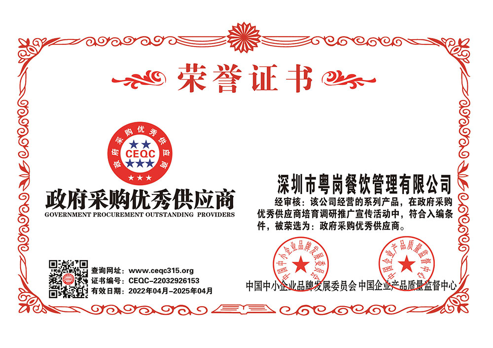 深圳市粵崗餐飲管理有限公司,是一家集蔬菜種植和農(nóng)副產(chǎn)品配送為一體的專業(yè)型餐飲公司,主要為學(xué)校、工廠企事業(yè)機(jī)關(guān)單位提供蔬菜和農(nóng)副產(chǎn)品配送服務(wù)。公司自成立以來始終以質(zhì)優(yōu)價(jià)廉、服務(wù)至上為原則,嚴(yán)格按照ISO:9001國際標(biāo)準(zhǔn)體系進(jìn)行管理。同時(shí)建立了行業(yè)領(lǐng)先的配送中心、大型冷庫和保鮮庫、檢測中心以及專業(yè)化的配送團(tuán)隊(duì),能長期安全、穩(wěn)定、準(zhǔn)時(shí)的配送貨物。我們所有蔬菜均經(jīng)過初步加工、無黃葉,無泥沙等雜質(zhì),利用率達(dá)97%以上...保障向用戶提供的各類食材的衛(wèi)生和質(zhì)量。公司為了適應(yīng)不同客戶的需求,配有專業(yè)人員和配送車輛,實(shí)行“一對(duì)一”的服務(wù)體制,一心一意的為客戶服務(wù),秉承粵崗誠實(shí)守信、服務(wù)第一、客戶至上的服務(wù)標(biāo)準(zhǔn),真正讓客戶花最少的錢吃最好的菜。粵崗多年來何以欣欣向榮,因?yàn)槲覀冎乐挥杏掠趽?dān)當(dāng)責(zé)任,才能承擔(dān)更大的責(zé)任,就是因?yàn)?粵崗員工貫徹公司態(tài)度決定一切、細(xì)節(jié)決定成敗的真理,從質(zhì)量抓起,從服務(wù)做起,才創(chuàng)造了如今的規(guī)模化供應(yīng)、統(tǒng)一性配送、專業(yè)化服務(wù)的粵崗。